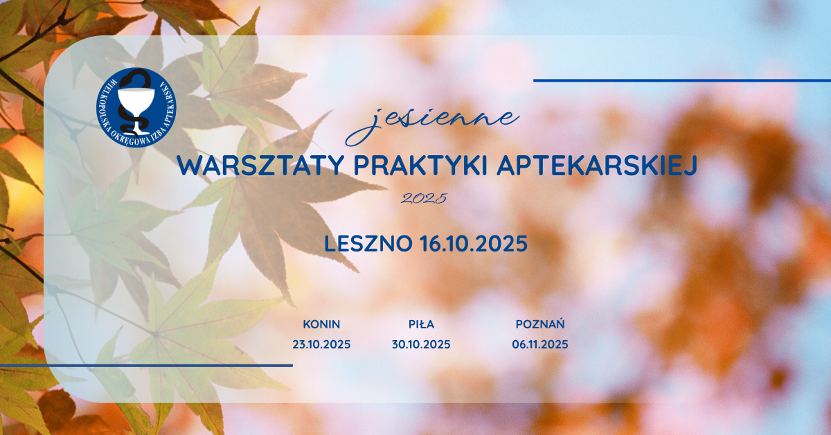 Wielkopolska Okręgowa Izba Aptekarska serdecznie zaprasza farmaceutów na tegoroczne Jesienne Warsztaty Praktyki Aptekarskiej!