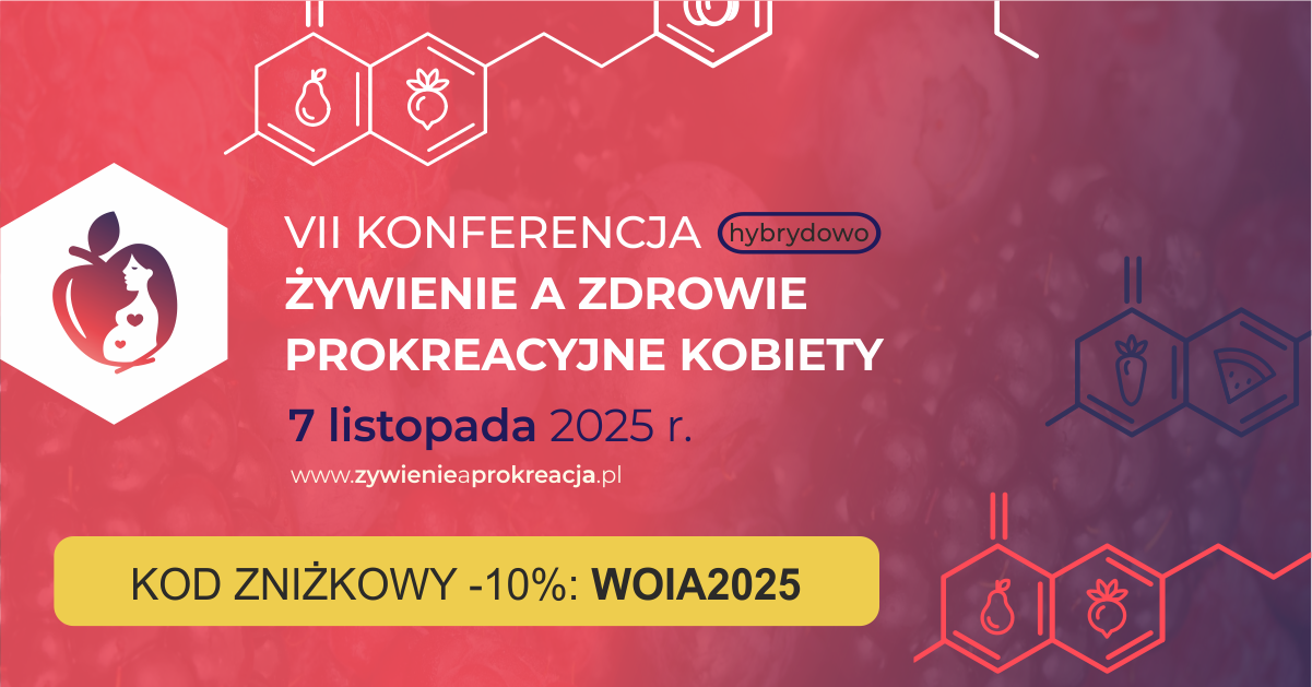 W imieniu organizatorów zapraszamy do udziału w VII edycji Konferencji pt. „Żywienie a Zdrowie Prokreacyjne Kobiety”, która odbędzie się w dniu 7 listopada 2025 r. w Hotelu Mercure Centrum w Poznaniu w formule hybrydowej. Otrzymujecie Państwo możliwość wzięcia udziału w Konferencji stacjonarnie w Poznaniu lub online. Tematyka Konferencji wpisuje się w najnowsze trendy naukowe i praktyczne, które dotyczą wpływu diety na zdrowie człowieka.